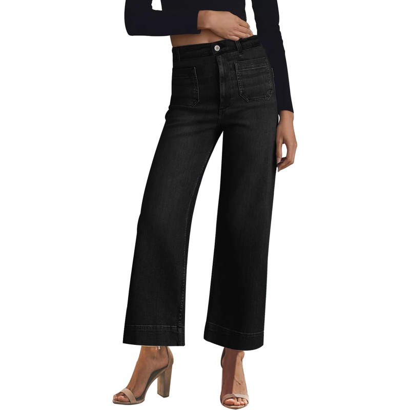 - Elevate your style with high-waisted wide leg jeans that flatter different body shapes, visually elongating your leg line while providing a smoothing effect for a slimmer appearance.