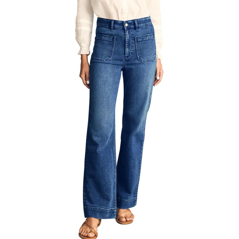Women's Wide Leg Jeans High Waisted Straight Leg Stretchy Denim Pants with Pockets WLL003