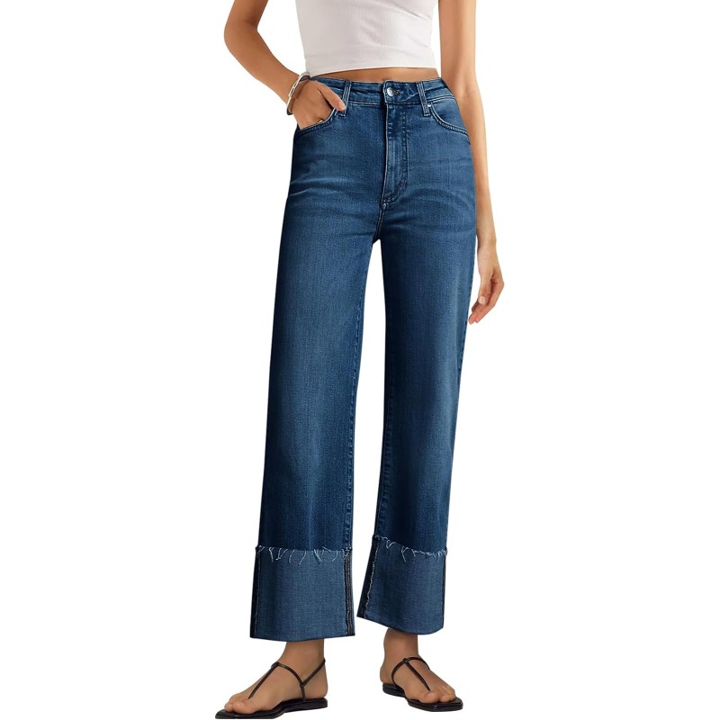 Women's Wide Leg Jeans High Waisted Straight Leg Stretchy Denim Pants with Pockets Wll005
