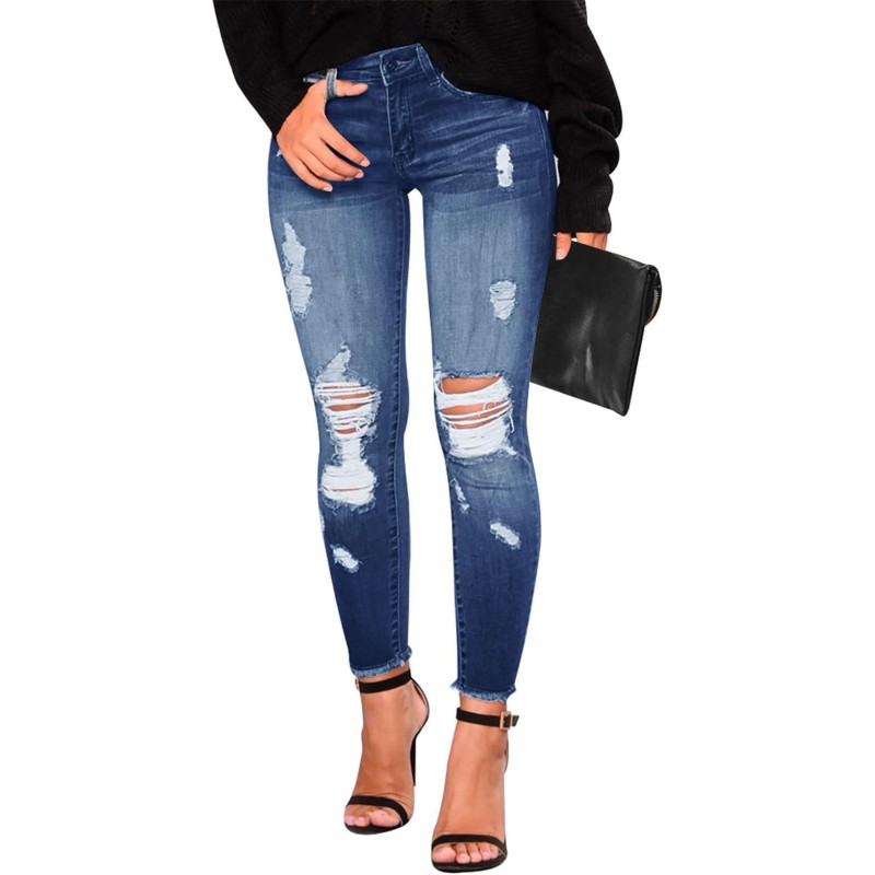 Women's Skinny Ripped Trendy Jeans Distressed Stretchy Denim Pants